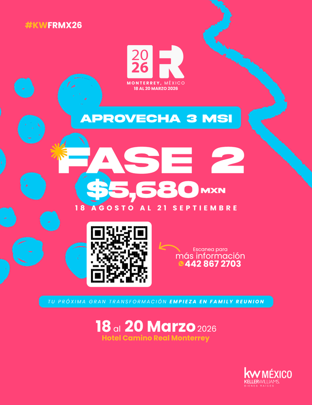Cada edición de Family Reunion marca un antes y un después en la trayectoria de los asesores KW. Monterrey 2026 será el escenario para escribir la próxima gran historia de crecimiento, liderazgo y transformación.
